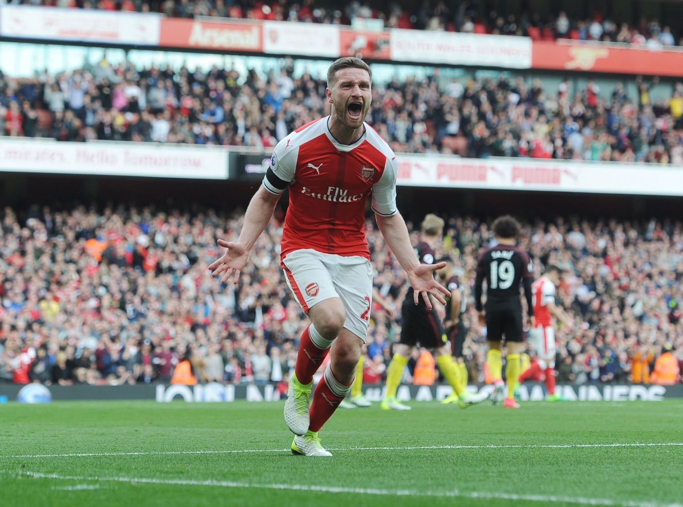 Just five minutes had been played when they broke the deadlock. Leroy Sane latched onto Kevin De Bruyne’s long range pass and rounded David Ospina to slot into an empty net for a calm and composed finish. It is not often that Hector Bellerin is done for pace but he was unable to stop Sane scoring.