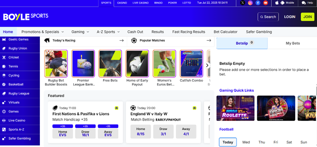 BoyleSports is an excellent choice for both sports betting and casino gaming, with a huge range of promotions and odds boosts available every day. In my opinion, it’s one of the best online casinos/sportsbook hybrids.