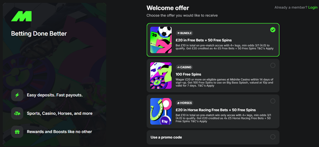 Choose the offer that best suits your betting needs, whether that’s purely sports (LiveScore Bet, Virgin Bet) or occasional forays into casino gaming (BoyleSports, Midnite).