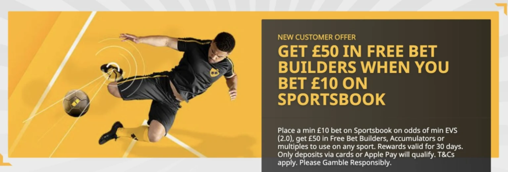 | Includes both £50 in Bet Builders and 10 Free Spins | Free Bets restricted to Bet Builders only |
