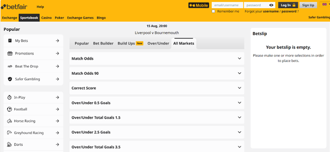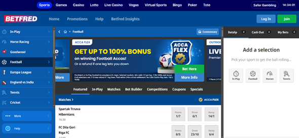 The first is the layout and navigation of the site, as well as how it looks on your chosen device. You can get a feel for this without having to register for an account; just type in the URL and spend time navigating around. Does it look good to you? Can you find your favourite football leagues and bet types easily?