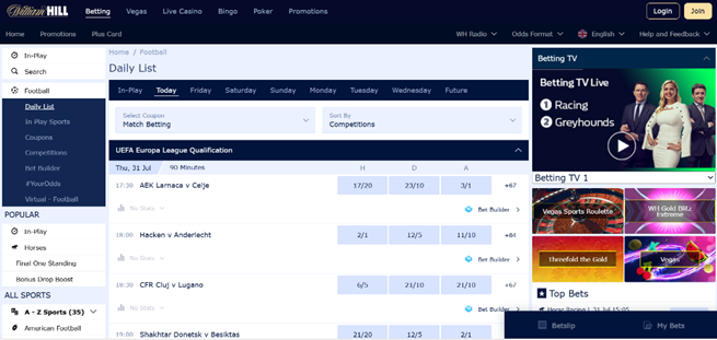 The jewel in bet365’s crown is their live streaming channel, which offers broadcasts of some fantastic competitions: German Bundesliga, Spanish La Liga, French Ligue 1, English FA Cup and even international games.