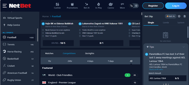 NetBetExcellent live betting odds