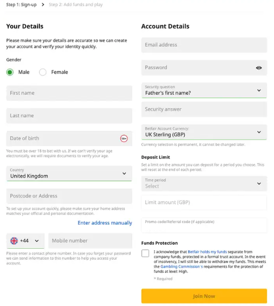 To claim the Betfair New Customer Offer Bet 10 Get 30 you will need to first register for an account and then make a qualifying deposit/first wager. Read through the instructions below to help guide you through the claiming process: