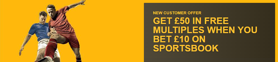 New customers will receive £50 in Free Multiples for the Sign Up Offer. A qualifying first wager of £10+ on odds 1/1 (2.0) or greater must be settled before the bonus funds will be credited into their account. (T&Cs Apply)