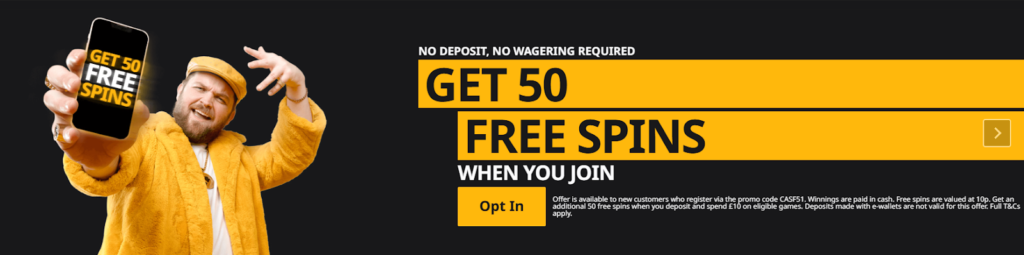 Betfair is currently offering a Casino Welcome Bonus which can be claimed instead of the Sports Welcome Offer. The promotion hands out 50 Betfair Free Spins without even having to make a deposit. Simply sign up for a new account using the promo code CASF51 and opt-in at the ‘Promotions’ page and you’re good to go.