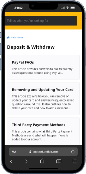 After completing our registration on the site, we tested PayPal withdrawals. They are usually the fastest route. Once Betfair releases the funds, PayPal normally posts them within minutes.