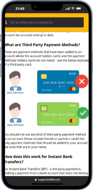 • Apple Pay: Supported mainly for deposits, but in some cases, Betfair allows withdrawals to linked cards under Apple Pay. Availability depends on your bank’s integration with Apple Pay. You can expect a Betfair withdrawal time of 1 – 3 days once released.