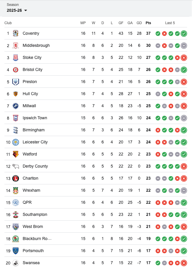This screenshot has been taken on 25/11/25. It might change according to the Championship’s evolution.