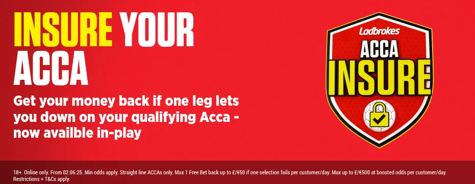 With the ACCA Insurance & Boost promo you can get your money back if one leg of your multibet lets you down, up to £50. This promotion only applies to 5+ team ACCAs from the following selected markets: Match Result, Both Teams to Score, Match Result and Both Teams to Score, Correct Score, Over/Under Total Goals or 2up&win. (T&Cs Apply)