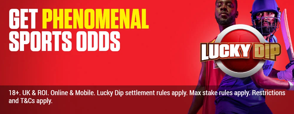 Lucky Dip allows bettors to place ‘Single’ wagers which have randomly assigned odds. The Lucky Dip product is powered by a Random Number Generator, making each odds selection completely random. Only select football markets will be available for Lucky Dips. (T&Cs Apply)