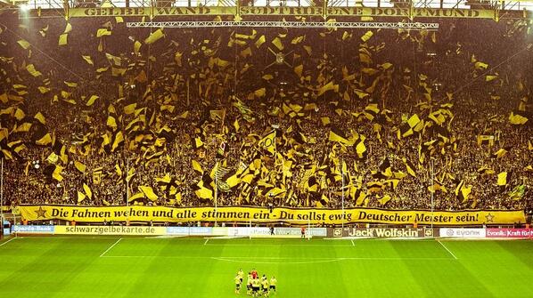 Borussia Dortmund famously have the Yellow Wall at the Signal Iduna Park, a single tier terrace of over 24,000 fans singing and cheering their side on every game.