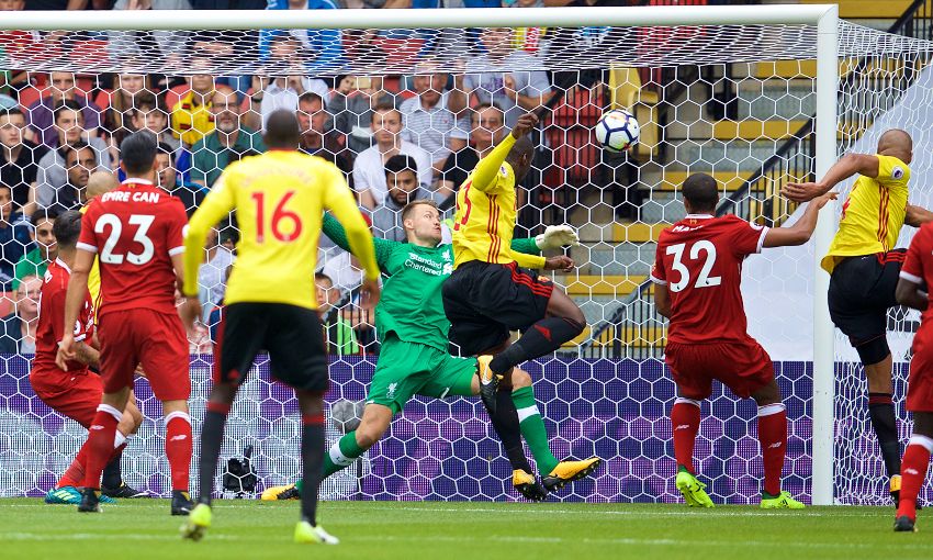 Just seven minutes in to the match Watford were presented with the first chance of the game. Pereyra had a shot at goal which Mignolet parried for a corner. The resulting corner comes in and the big man Okaka is given the freedom to head in from just yards out. Liverpool’s zonal marking was all over the place.